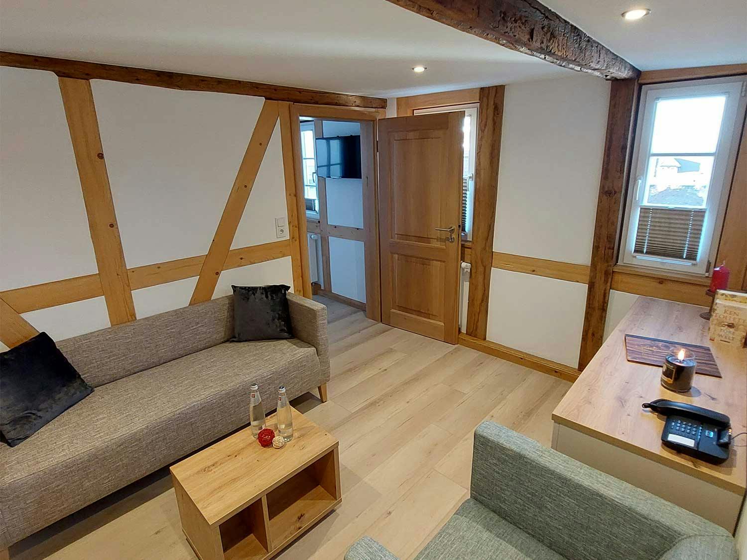 - Eingangsbereich mit Sitzmöglichkeit (Sessel + Zweisitzer)